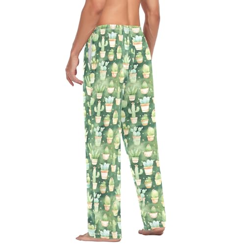 Men's Cute Cactus Pajama Pants with Pockets - Straight Fit Cotton Sleep Bottoms for Lounge & Nightwear#719 2