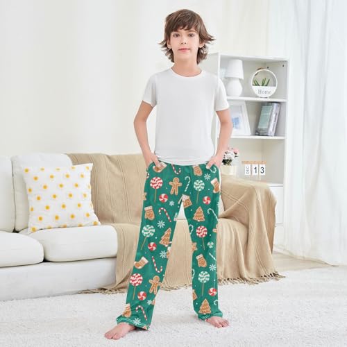 ZZXXB Gingerbread Candy Cane Boys Long Pants Soft Trousers Elastic Waist Kids Lounge Bottoms with Pockets S-XL 5