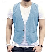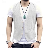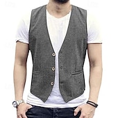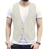 More information about Men's Vest Waistcoat Gilet Linen Vest Vacation Party Business Fashion Casual Spring Fall Pocket Buttons Linen Cotton Blend Comfortable Plain Single Breasted One-button V Neck Regular Fit Black White