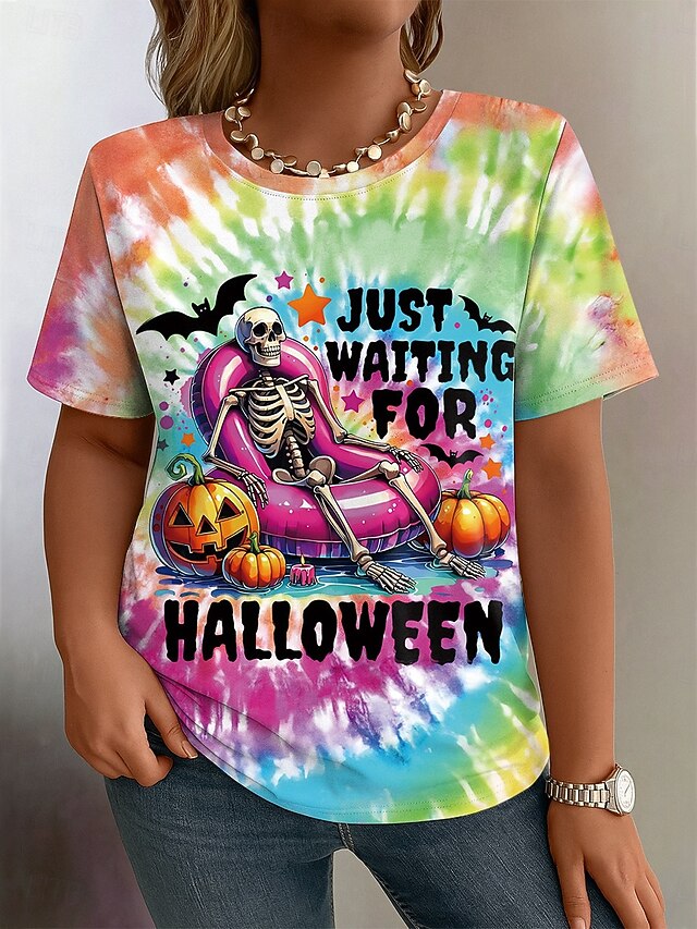HOT ! Halloween Women's Plus Size Tops T Shirt Graphic Print Short Sleeve Crew Neck Casual Daily Polyester Fall Yellow Pink