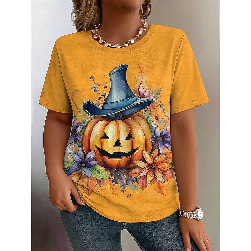 More information about Halloween Women's Plus Size Tops T Shirt Graphic Print Short Sleeve Crew Neck Casual Daily Polyester Fall Yellow Pink