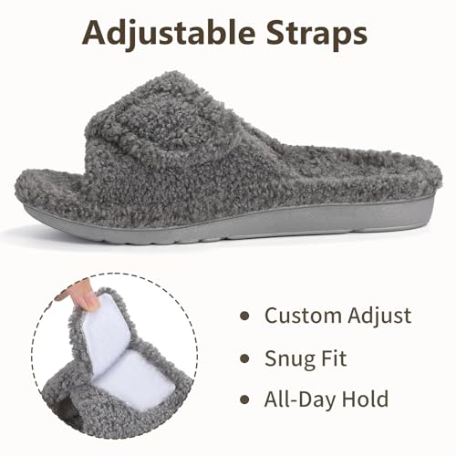 Litfun Womens Fuzzy Arch Support Slippers Orthopedic Comfy Adjustable Open Toe House Shoes, New Grey 38 5