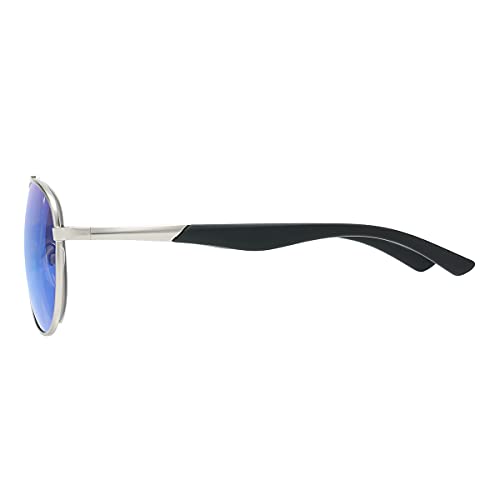 HOT ! Piranha Luther Aviator Sunglasses with Silver Frames and Mirrored Blue Lens