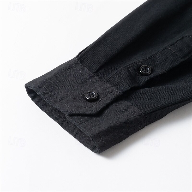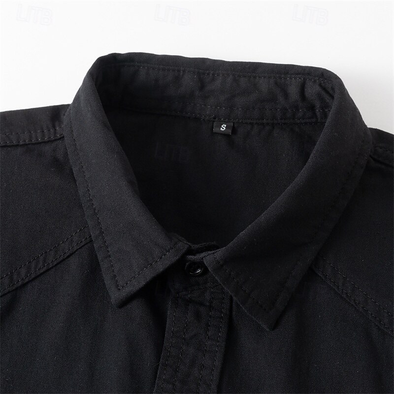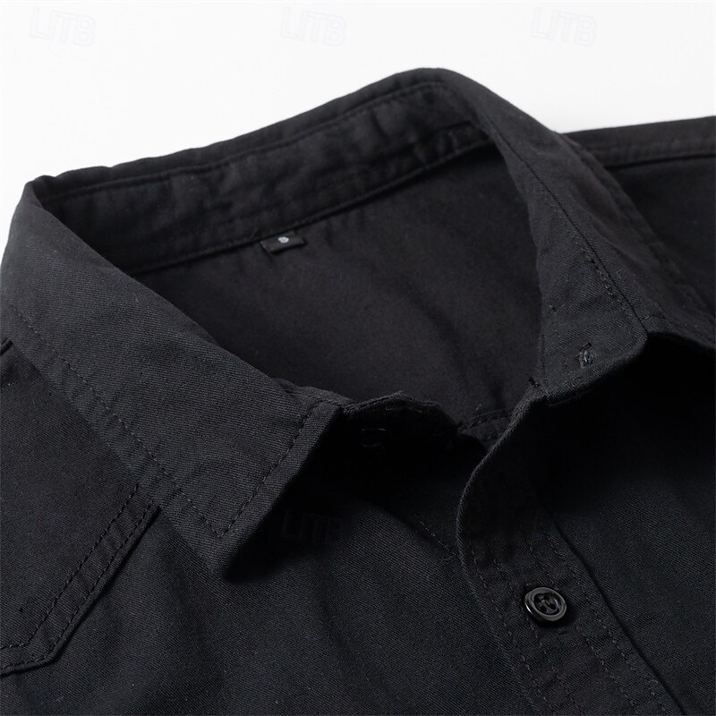 More information about Men's Shirt Summer Shirt Casual Shirt Button Up Shirt Black khaki Army Green Gray Long Sleeve Plain Lapel Vacation Holiday Pocket Clothing Apparel Polyester Fashion Casual Comfortable