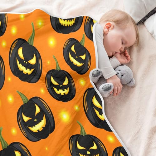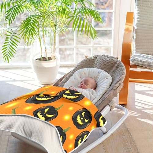 HOT ! Burbuja Glowing Pumpkins Baby Blanket for Boys Girls, Nursery Soft Warm Swaddling Receiving Baby Blankets, 30x40 in Toddler Blanket