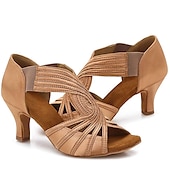 More information about Women's Tan Strappy Latin Dance Shoes – Peep-Toe High Heel Ballroom Sandals with Elastic Straps for Salsa, Tango & Performance