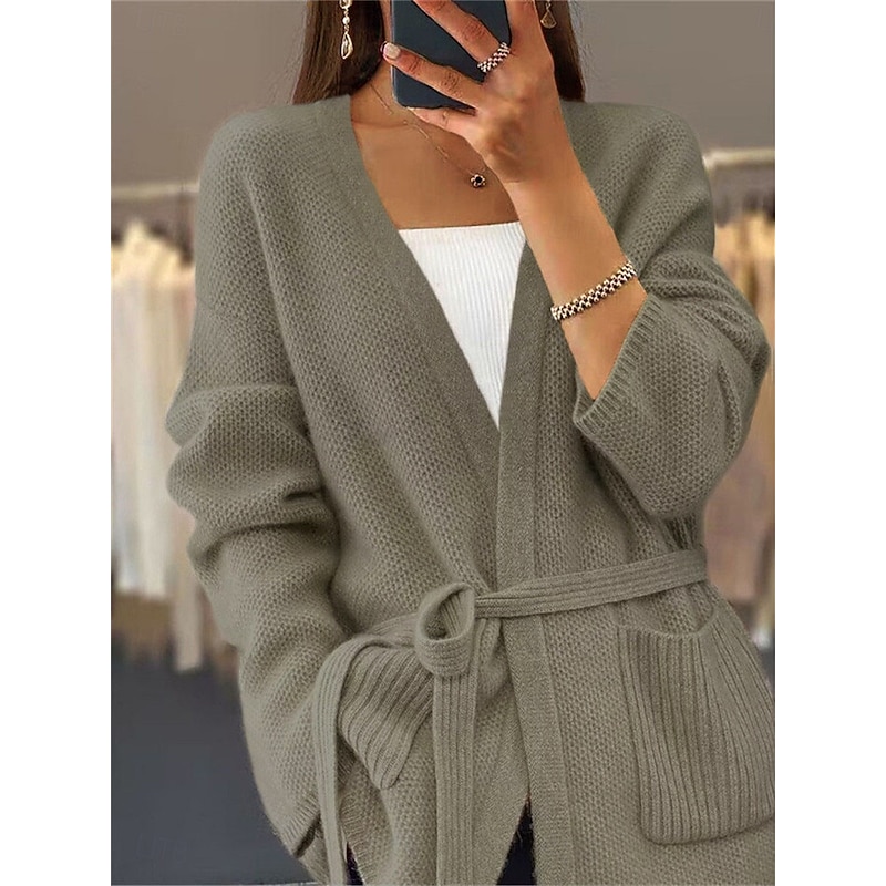 More information about Women's Sweater Cardigan Casual Soft Pure Color Ribbed Open Front Pocket Knitted Long Sleeve Regular Tops Knit Outdoor Daily Weekend Green Beige Fall Winter