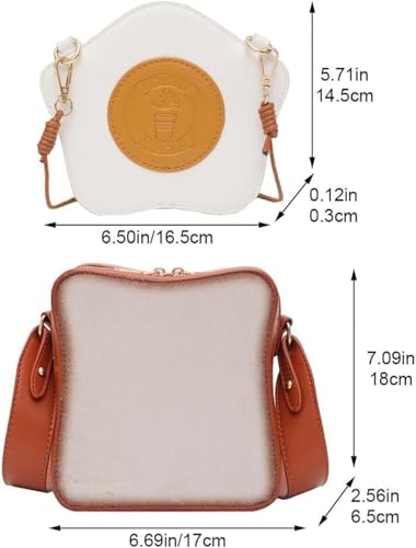 • 【Size】: This cute bag is lightweight, making it easy to carry on the go. The capacity of toast is enough to hold basic items, such as mobile phones, wallets, glasses, lipstick, candy and other necessities.