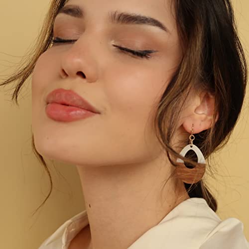 POMINA Lightweight Fashion White Earrings for Woman Oval Teardrop Dangle Earrings Geometric Colored Resin Wood Earrings Two Tone Color Spring Gold Drop Earrings 6