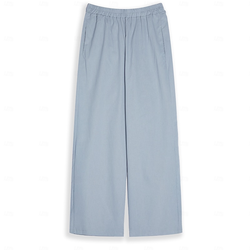 More information about Women's Cotton Linen Sets Two Piece Sets Solid Color Fashion Round Neck Street Daily 2 Piece White Blue Khaki Gray Spring & Fall