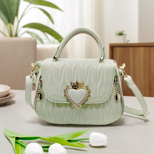 Women Leather Quilted Handbag Top Handle Satchel Bag with Heart Crown Decoration 1