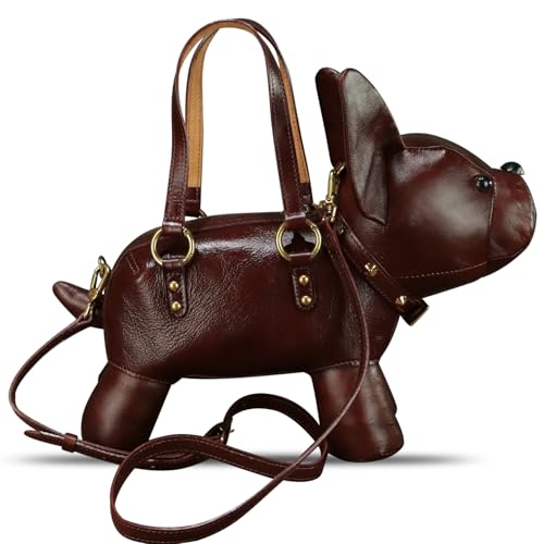 HOT ! Genuine Leather Purses and Handbags for Women Unique Handmade French Bulldog Shape Crossbody Shoulder Bag Vintage Satchel