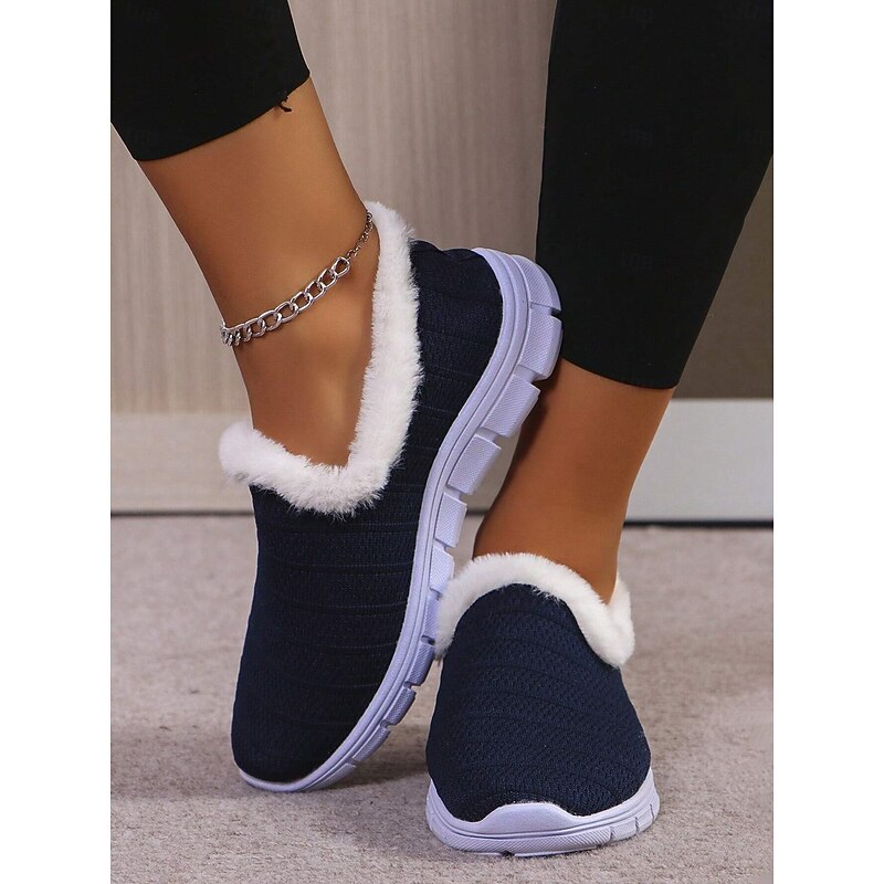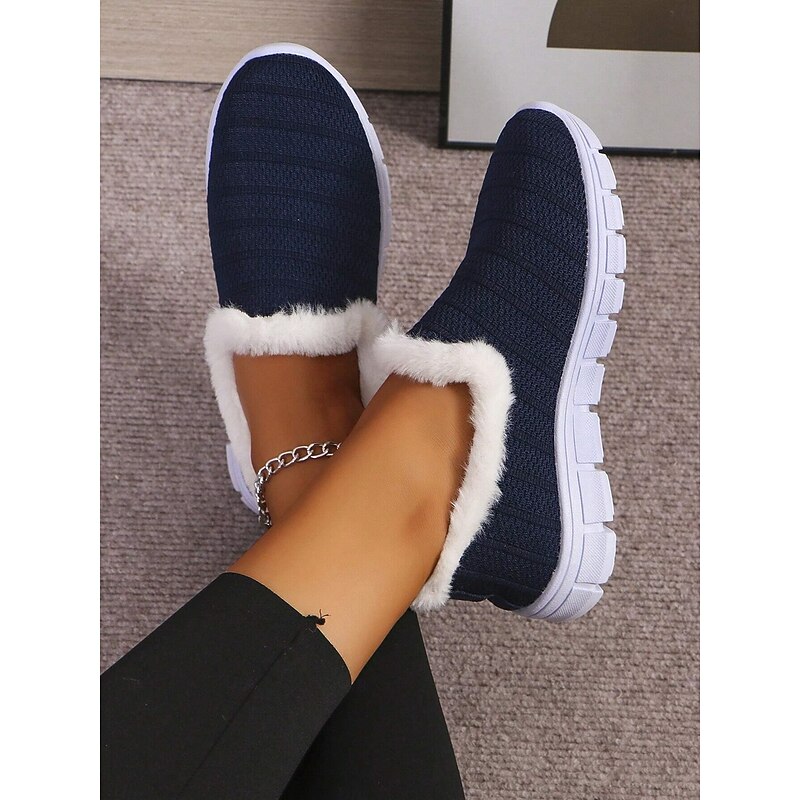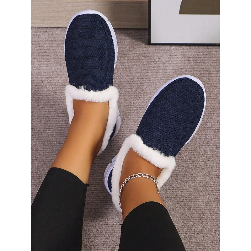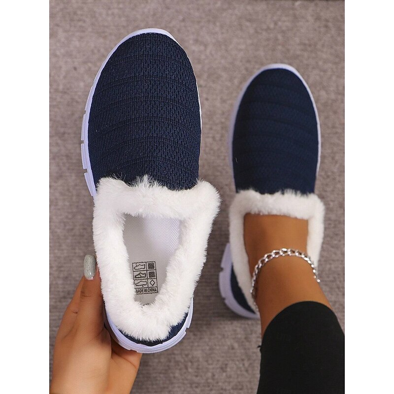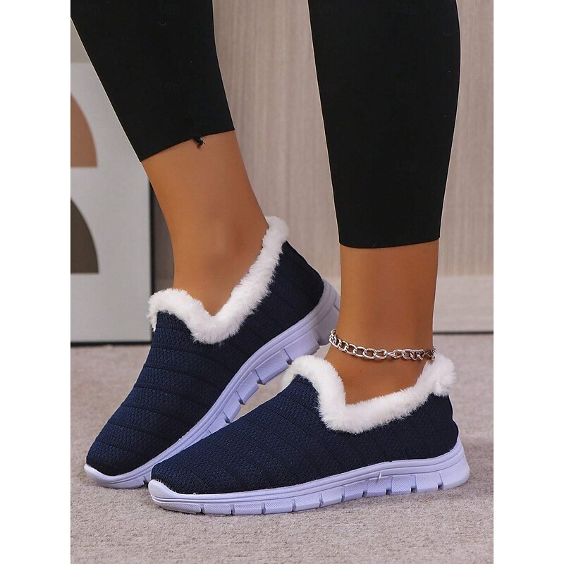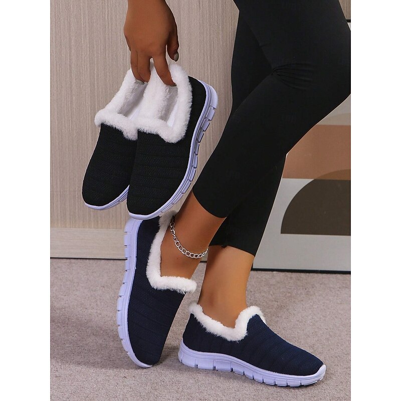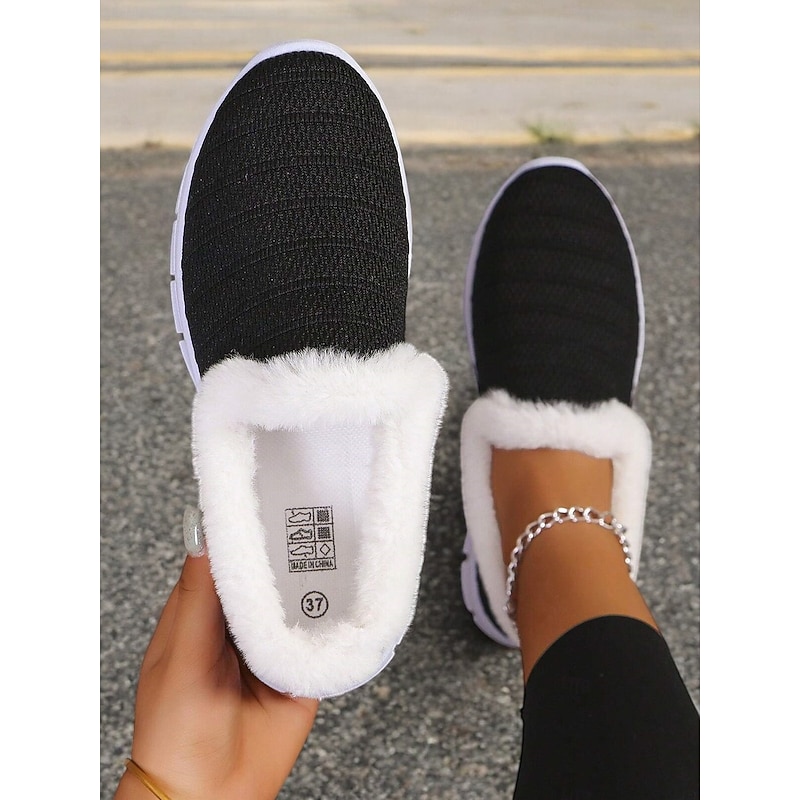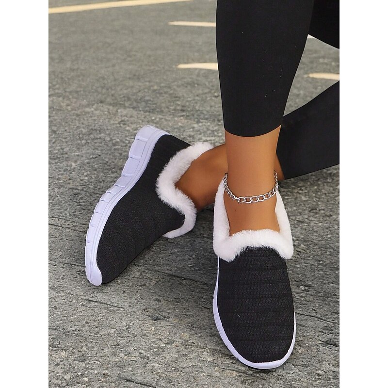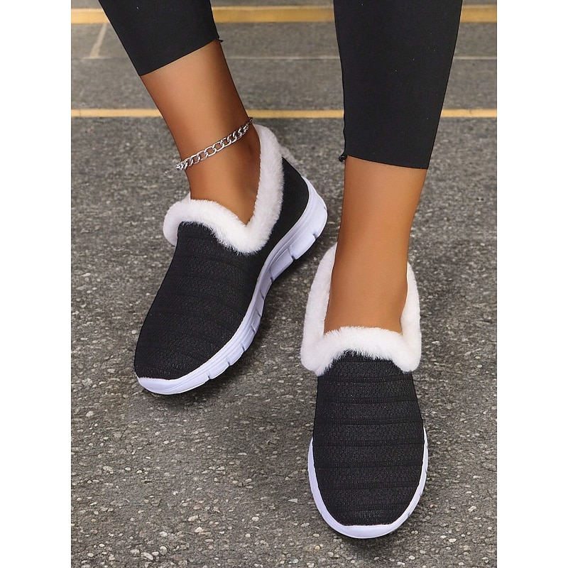 Highlights [Fabric] These Women's Winter Slip-On Shoes feature an upper crafted from Tissage Volant, offering durability and a unique textured appearance. The interior is lined with plush faux fur in a vibrant white, ensuring your feet remain warm and cozy during colder months. [Fit] Designed with a flat heel and a round toe shape, these slip-ons provide a comfortable and snug fit, making them ideal for everyday wear. [Design Highlights] The sleek black exterior contrasts beautifully with the plush white fur lining, creating a modern and fashionable look. The lightweight rubber sole offers excellent traction and flexibility, enhancing the overall walking experience. [Occasions] Perfect for daily wear, traveling, or celebrating Mother's Day, these casual and comfortable shoes are suitable for a variety of activities, from casual outings to leisurely strolls. [Size Range] Available in multiple sizes, including US5.5 to US10, these shoes cater to a wide range of foot sizes, ensuring a perfect fit for many.