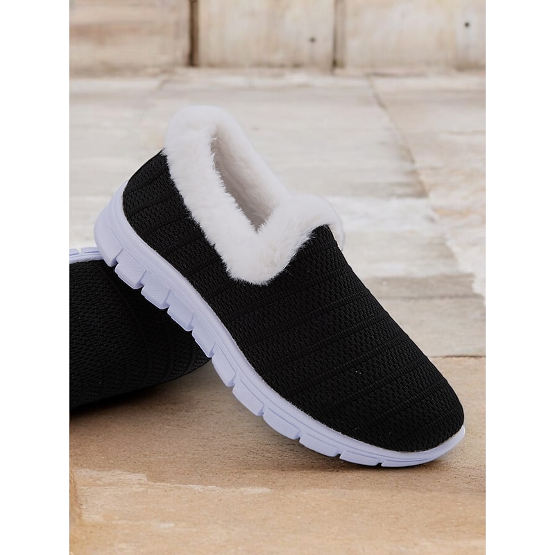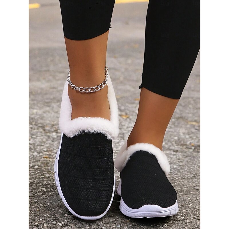 HOT ! Women's Black Slip-On Winter Shoes with Plush Fur Lining and Lightweight Sole, Cozy and Warm Footwear for Cold Weather