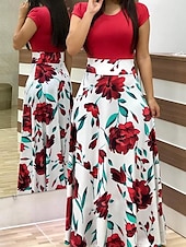 More information about Women's Long Dress Maxi Dress Floral Dress Print Dress Fashion Classic Modern Outdoor Vacation Holiday Regular Fit Flower Short Sleeve Crew Neck Pink Red Blue Summer