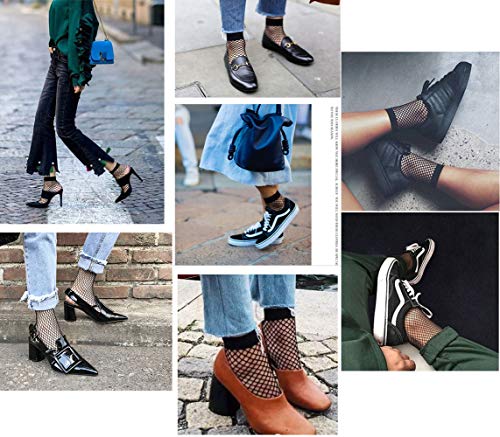 PENTA ANGEL 3 Pairs Women Black Lace Fishnet Socks Elastic Ankle High Dress Hollow Out Mesh Net Socks Tights for Summer Wear 5