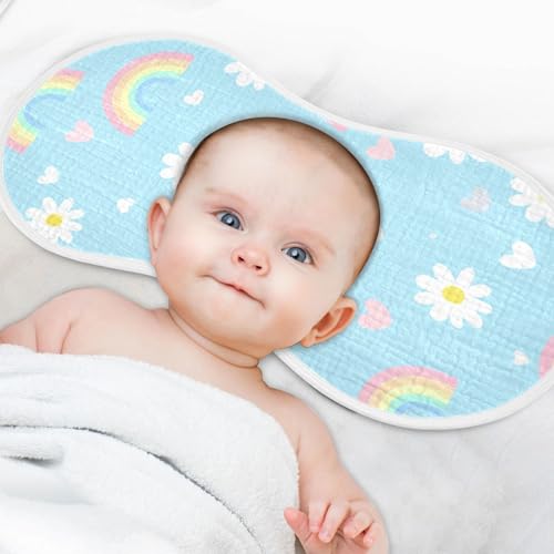 More information about Baby Burp Cloths, Soft Absorbent Burping Cloths for Babies, Cotton Milk Spit Up Rags, Large Size for Newborns, Baby Boys and Girls (Rainbow Daisy Pattern)
