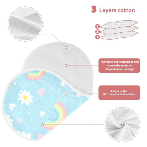 Baby Burp Cloths, Soft Absorbent Burping Cloths for Babies, Cotton Milk Spit Up Rags, Large Size for Newborns, Baby Boys and Girls (Rainbow Daisy Pattern) 3