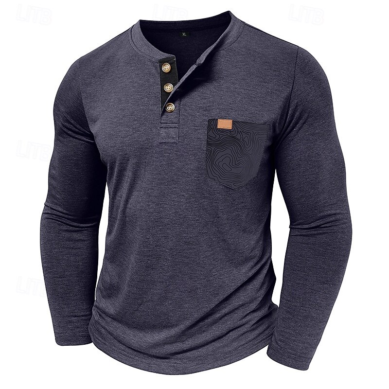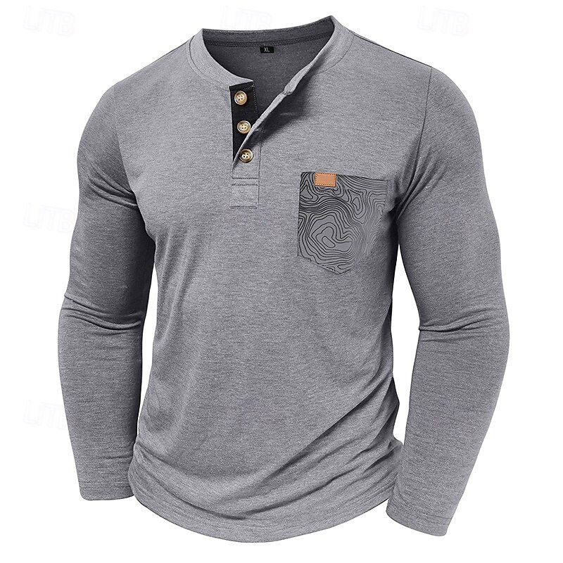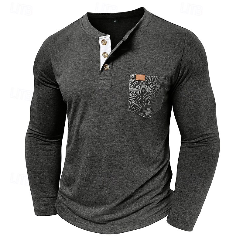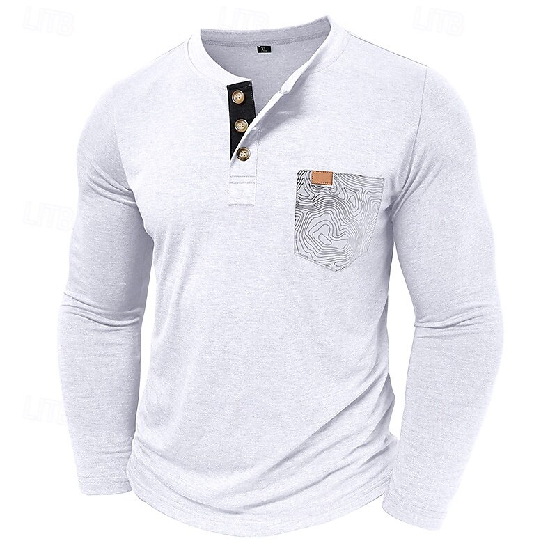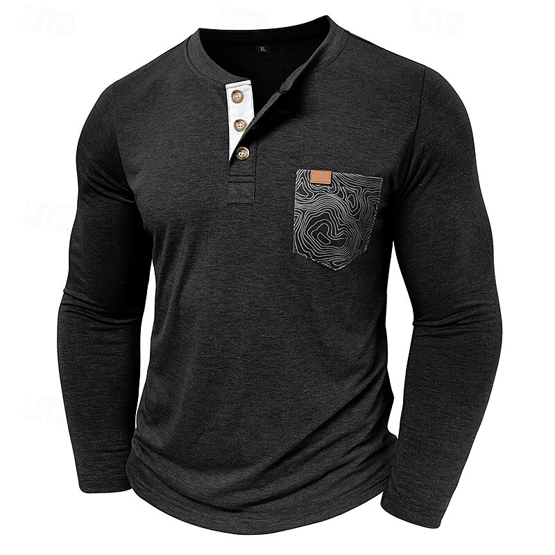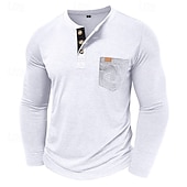 More information about Men's T Shirt Henley Shirt Tee Long Sleeve Tribal Solid Designer Basic Bohemian Pocket Henley Outdoor Casual Daily Summer Fall Dark Grey Black White Henley T-Shirt