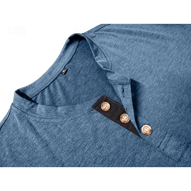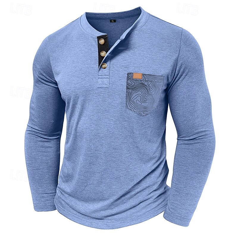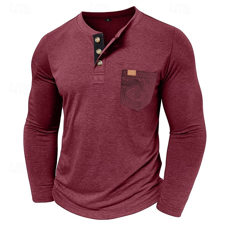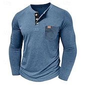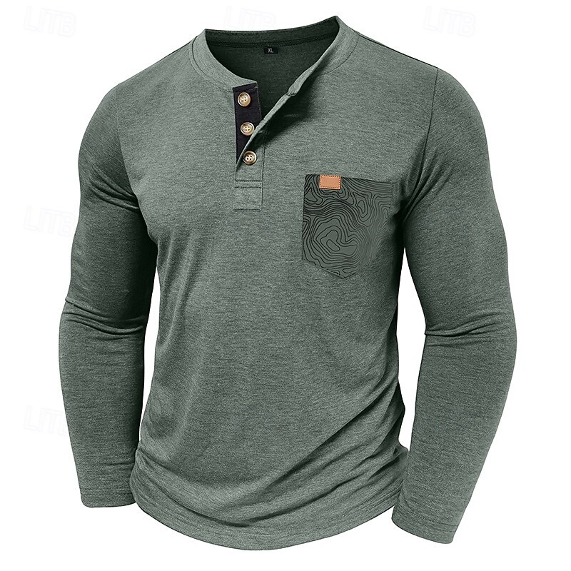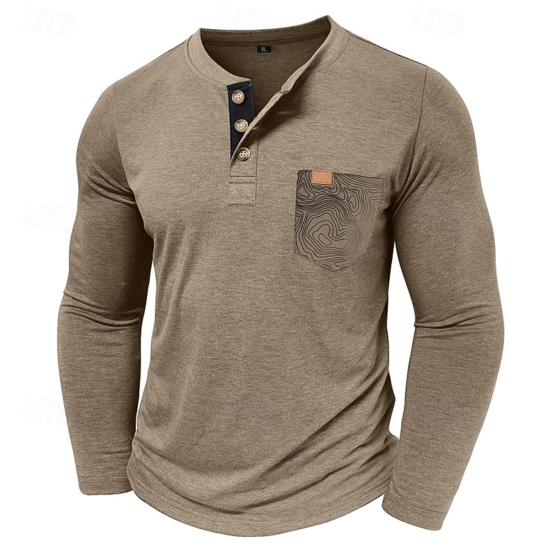 More information about Men's T Shirt Henley Shirt Tee Long Sleeve Tribal Solid Designer Basic Bohemian Pocket Henley Outdoor Casual Daily Summer Fall Dark Grey Black White Henley T-Shirt