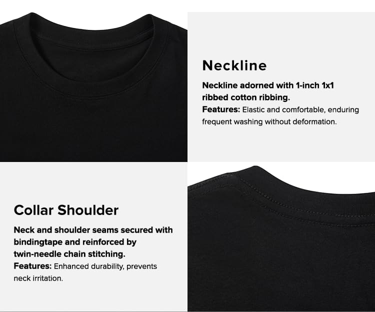 • HEAVY-DUTY CONSTRUCTION|The neckline adorned with 1-inch 1x1 ribbed cotton, and the shoulder seams are taped and reinforced with double-threaded chain stitching. Compared to similar products, our t-shirts can last more than 50% longer.