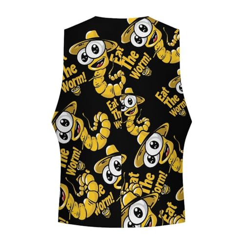 HOT ! Eat The Worm Men's Suit Vests Business Formal Dress V-Neck Waistcoat Tops with 2 Pockets