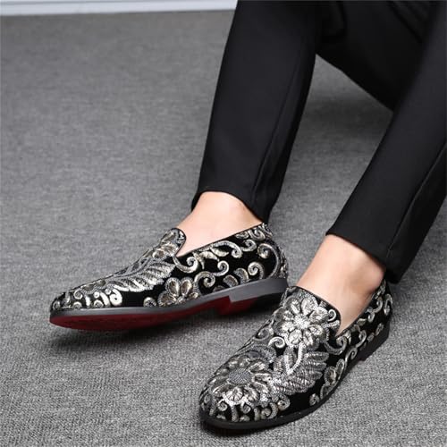 Men's Velvet Sequins Embroidered Slip On Dress Loafers Shoes Round Toe Lightweight Non Slip Sole Shiny Decorative for Weddings Parties Formal Events Office Church 7