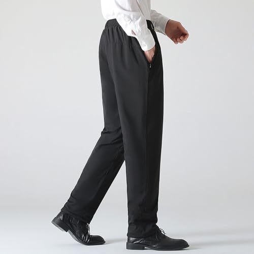 Men's Fleece Lined Dress Pants Elastic Waist Straight Leg Bottom Trousers Winter Warm Business Work Pants Plus Size 6