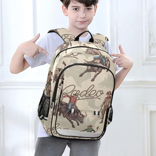 Cowboys Pattern West with Bulls Backpack School Bag Lightweight Laptop Notebook Tablet Backpack Students Travel Bookbag with Reflective Stripes 5
