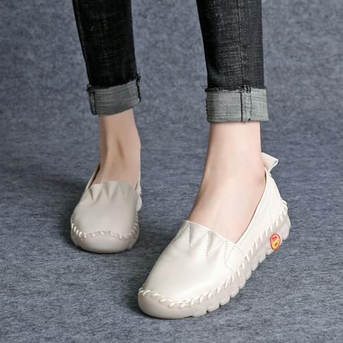 Women's Fashion Leather Soft Bottom Flat Casual Shoes Handmade Sewing Shallow Mouth Walking Shoes Comfortable Orthopedic 4D Pain Relief Casual Shoes 7
