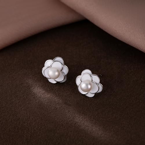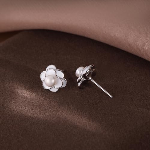 Reffeer Solid 925 Sterling Silver Pearl Flower Earrings Studs for Women Teen Girls Flower Stud Earrings Pearls for Wedding 7
