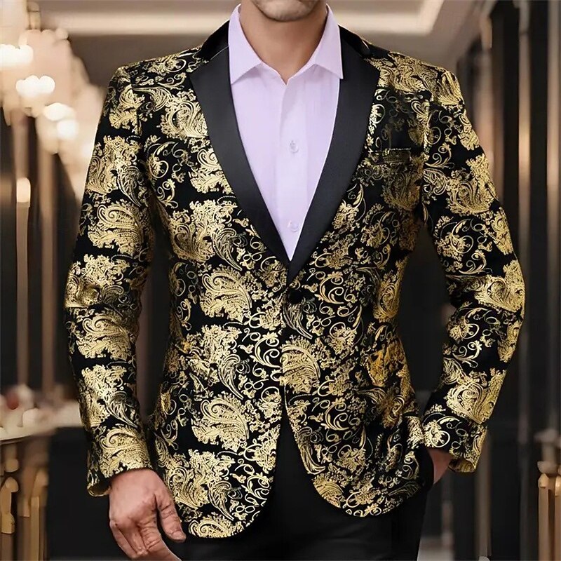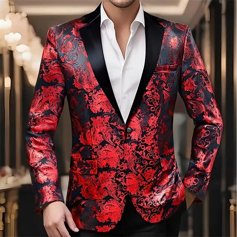HOT ! Men's Blazer Business Cocktail Party Wedding Party Party Spring & Fall Polyester Bronzing Pocket Buttons Comfortable Single Breasted Blazer Red Blue Purple Gold