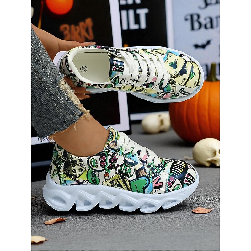 $32.99 - Women's Black and White Graffiti Halloween Sneakers - Chunky Sole Athletic Walking Shoes for Urban Streetwear, Fall Outfits and Costume Parties 2025. Shop for cheap Shoes For Women online? Buy at lightinthebox.com on sale today!