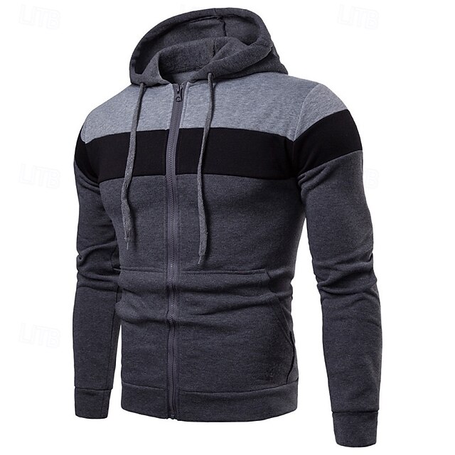 More information about Men's Hoodie Full Zip Hoodie Fleece Hoodie Black Yellow Red Blue Gray Hooded Plain Patchwork Color Block Sports & Outdoor Casual Daily Streetwear Cool Sportswear Spring & Fall Clothing Apparel