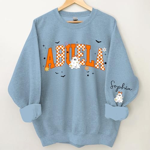 • Customizable Halloween Sweatshirt – Personalize this spooky sweatshirt with your kids’ or grandkids’ names on the sleeve, making it a truly unique piece for moms, nanas, and grandmas. Great for showing family love during the Halloween season.