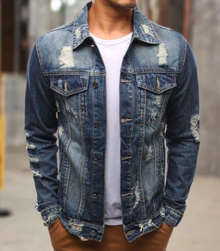 chouyatou Men's Distressed Button Front Casual Denim Jean Trucker Jacket 1