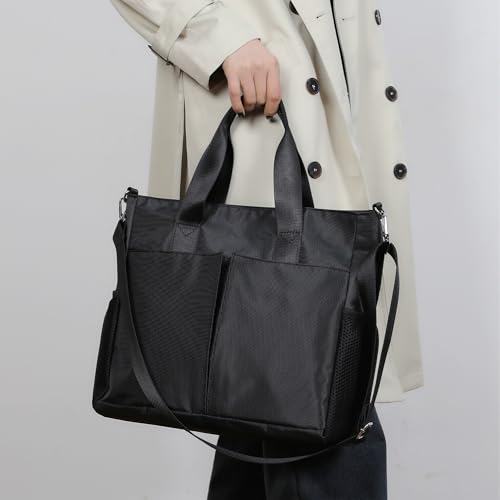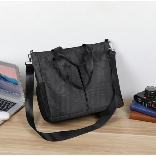 HOT ! Oxford Canvas Tote Bag for Women,Crossbody Shoulder Bags for Men,Laptop Work Bag,Waterproof Nylon Multi Pocket Handbags for Teacher,Travel,Work,Outdoor,Black
