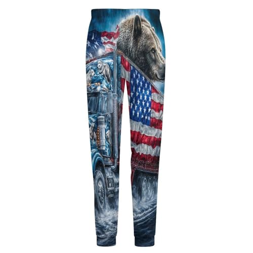 U.S Flag Bear Truck Men's Pajamas Pants Lightweight Sleep Lounge Pant Pjs Bottoms Casual Sleepwear 1