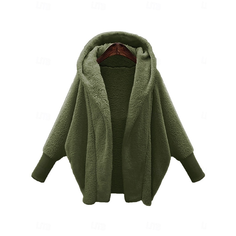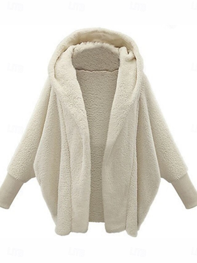 Women's Casual Jacket plush Breathable Pocket Oversized Casual Plain Vacation Street Casual Daily Wear Open Front Regular Hooded Loose Fit Long Sleeve Outerwear Black White Pink Spring Fall