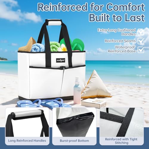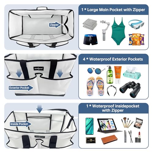 ZUXNZUX Beach Bag Waterproof Sandproof Utility Tote Lightweight Stand-up Structure With Zipper Closure 7