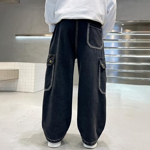 Boys Baggy Jeans Elastic Waist Straight Wide Leg Cargo Jeans Casual Loose Pull On Denim Pants Vintage Y2K Streetwear 6