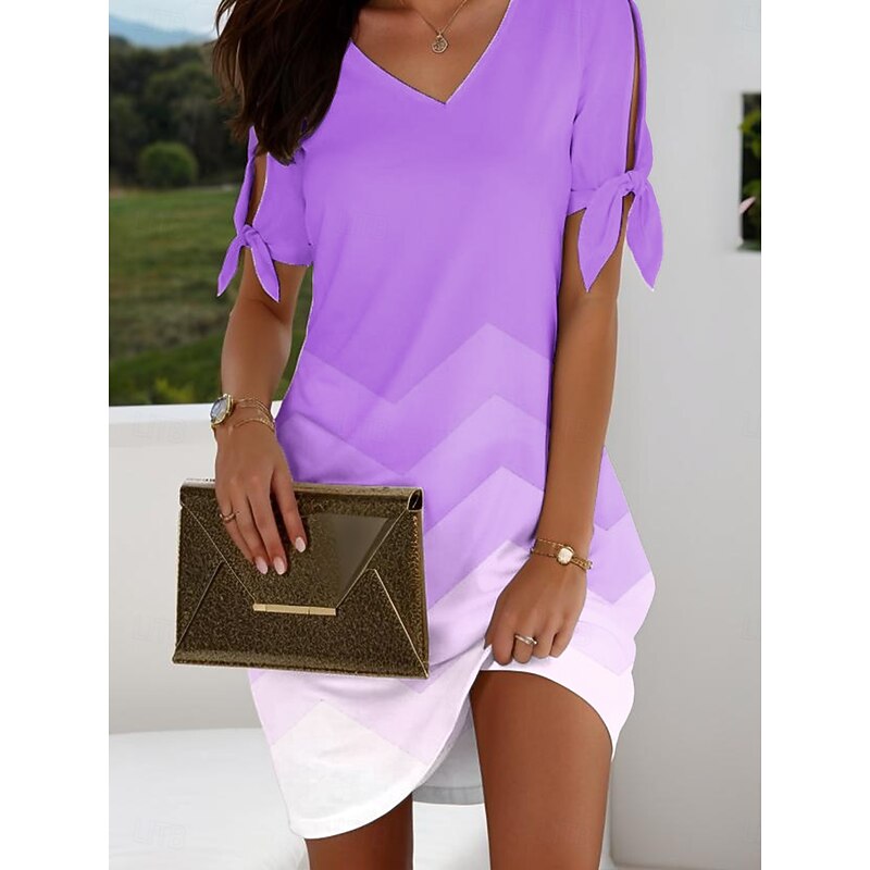 Women's Midi Dress T Shirt Dress Tee Dress A Line Dress Athletic Dress Elegant Vacation Vintage Cold Shoulder Regular Fit Ombre Graphic Geometric Short Sleeve V Neck Light Green Pink Blue Purple 1