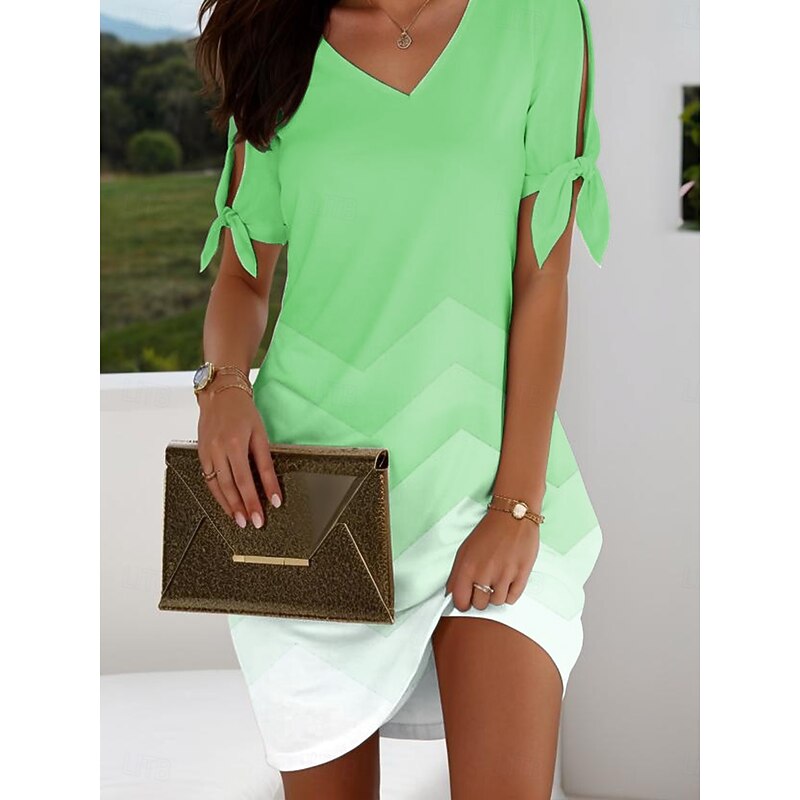 Women's Midi Dress T Shirt Dress Tee Dress A Line Dress Athletic Dress Elegant Vacation Vintage Cold Shoulder Regular Fit Ombre Graphic Geometric Short Sleeve V Neck Light Green Pink Blue Purple 4