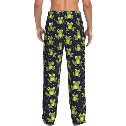 Mens Pajama Pants - Cute Frog Green Print Soft Sleep Lounge Pants For Men, Casual Pj Bottoms With Pockets 1