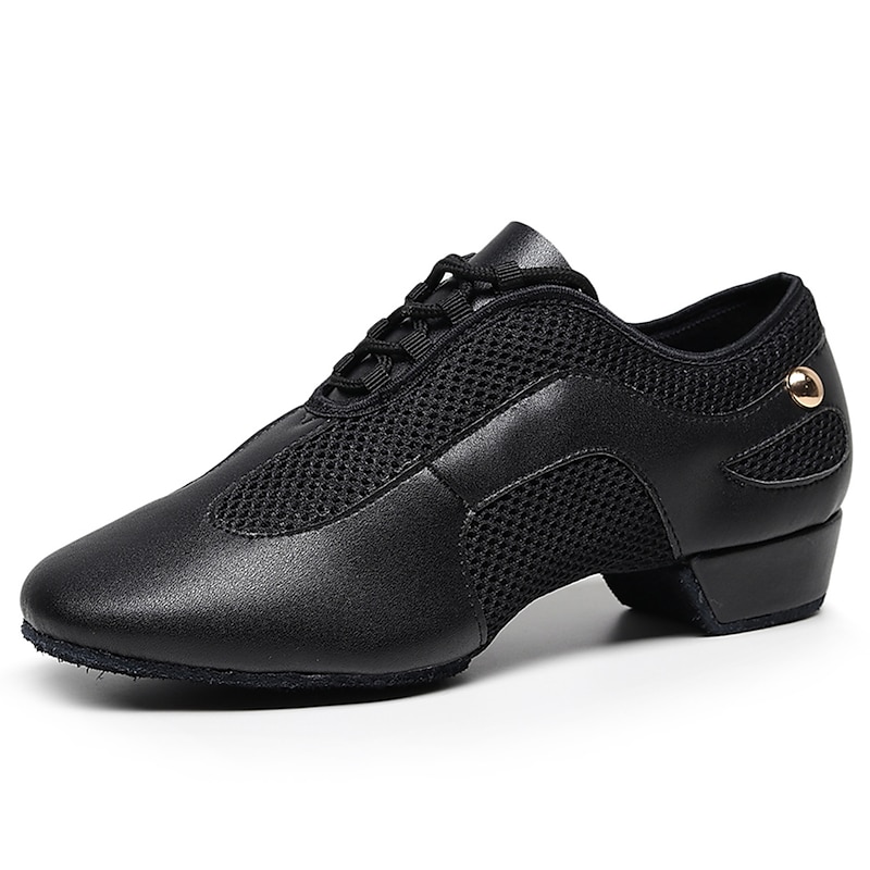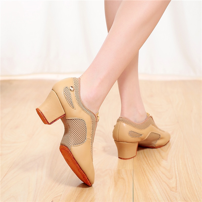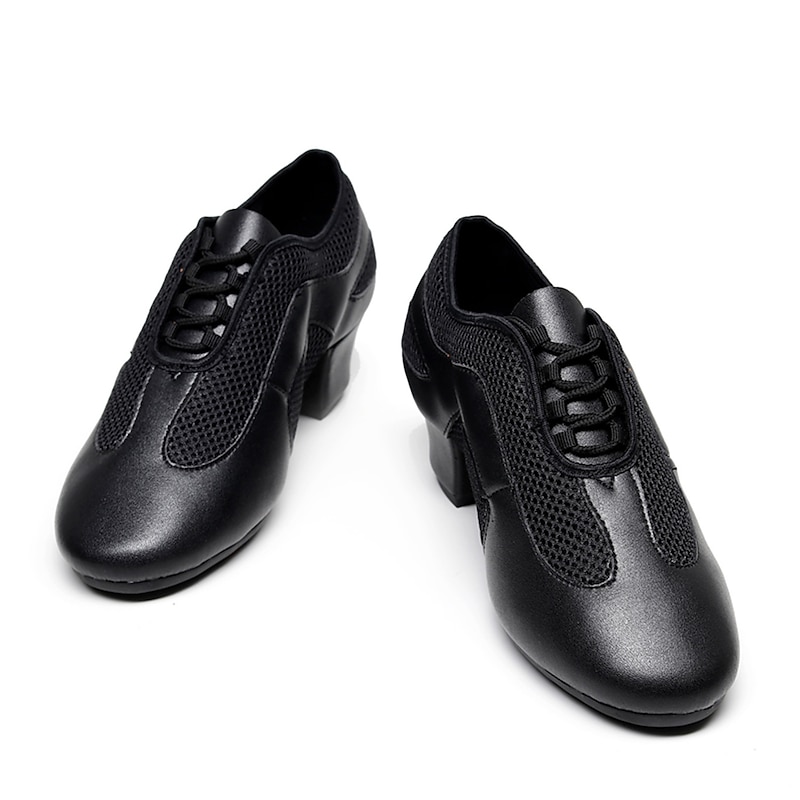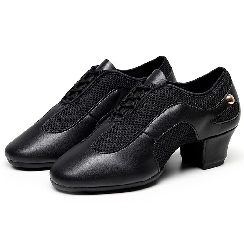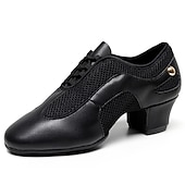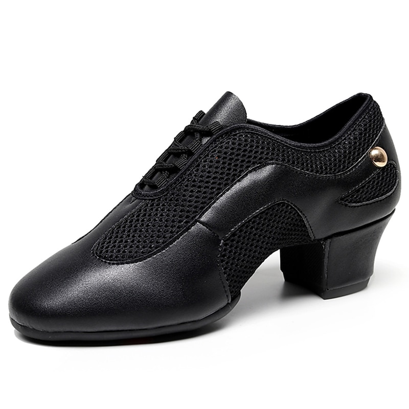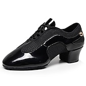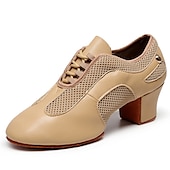 Highlights [Fabric] : Crafted from a sophisticated blend of glossy faux leather and breathable fabric lining, these women's dance shoes feature an elegant combination of materials that balance style and functionality. The black and beige color options add versatility and flair, making them suitable for any dance occasion. [Fit] : Designed with a classic Oxford style and a split sole construction, these shoes provide excellent flexibility and support. The thick heel ranges between 1 to 1.38 inches, offering comfortable elevation and balance, which is ideal for long practice or performance sessions. [Design Highlights] : These dance shoes boast a modern lace-up closure, ensuring a secure fit and a customizable look. The blend of patent-like sheen and mesh gives a contemporary touch, while the sturdy sole constructed from suede offers both durability and grip. [Occasions] : Perfect for indoor ballroom dance, practice training, and performance events, these shoes are an impeccable choice for dancers seeking both elegance and comfort. Their sophisticated design makes them a standout selection for a range of dance activities. [Size Notice] : Available in a comprehensive size range, accommodating US5 to US10, these shoes are designed to fit standard sizes. It is recommended to select your usual shoe size for optimum fit and comfort.