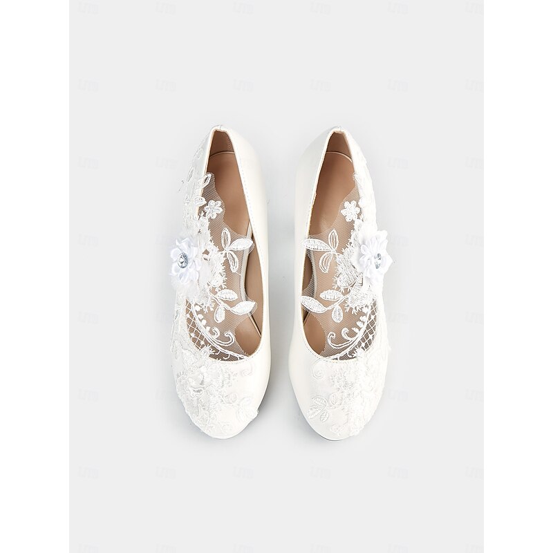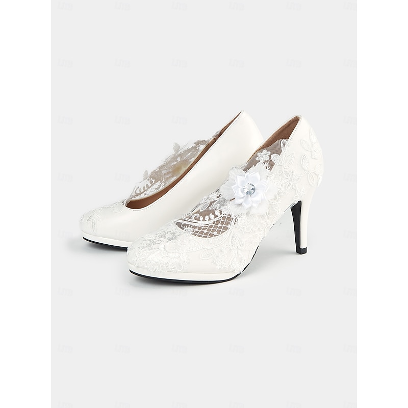 White Lace Bridal High Heel Shoes with Floral Embellishments – Elegant Wedding Shoes for Women 2