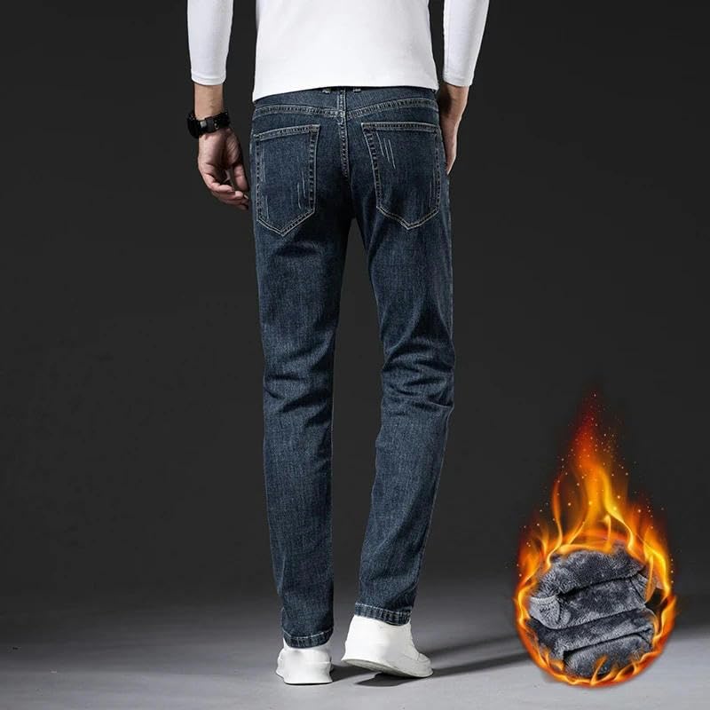 Winter Korean Jeans Men's Thickened Warm Elastic Slim Straight Denim Trousers 1