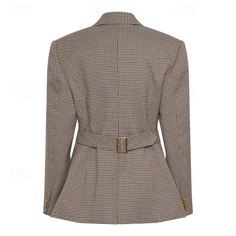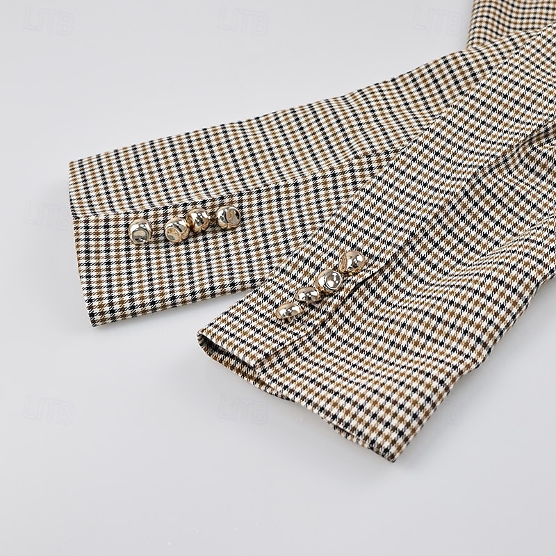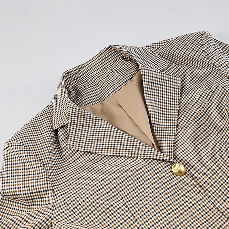 Women's Blazer Warm Comfortable Pocket Buttons Fashion Plaid Outdoor Holiday Single Breasted Regular Turndown Regular Fit Long Sleeve Outerwear Black Fall Winter 12