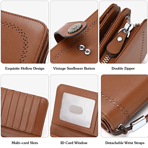 BOSTANTEN Briefcase for Women Genuine Leather Laptop Briefcase Shoulder Work Tote Bag Purse 15.6 Inch and Womens Wallet Genuine Leather Large Capacity Wristlet Clutch Purse Credit Card Holder 5
