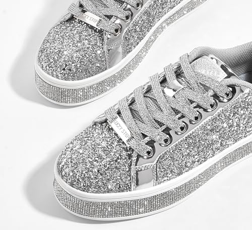 LUCKY STEP Women's Platform Glitter Sneakers | Sparkly Bling Shiny Dressy Bedazzled Wedding Bridal Fashion Walking Shoes 5
